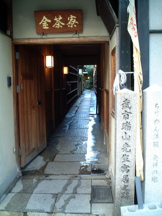 | 史跡ではありませんが、ちょうどおなかもすいたので、木屋町通りではお気に入りの店「左近太郎」に入ることに。カクテルに高杉晋作とか桂小五郎とか、面白いものが取りそろえられており、ご飯も美味しいです。お値段も安い。ハモのご飯とか頂きましたが、ウマーでした。このすぐ近くに桂小五郎が住んでいました。 |