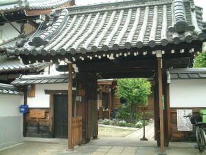 | 壬生寺の事務所で土産を買って(前にも買ったハンカチを…)、新徳寺の前を通り、八木邸を見に行くことにした。新徳寺は元旦だけ本堂の中を見ることができる。今日は座禅会があるらしかった。 |