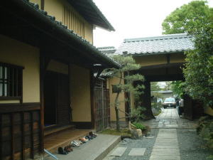 | 八木邸の門前で1000円払い、お茶・菓子つきの入場券を買って中へ入る。係の人に聞いたら、外観は写真に撮っても良いと言われたので門の内側から撮ってみた。芹沢鴨暗殺当日の話を聞きながら家のつくりを見せてもらう。手前の仏間に平山君、その横の部屋に平間さん床の間に鴨先生が寝ていたらしい。浪士文久報國記事では鴨先生に屏風をおっかぶせて刺し殺したと書いてあるが、こちらでは子母澤寛さんの説をとって説明しているようだ。ここへもう一度来たらお手洗いを見せていただこうと思っていたのだが、ココから先は立ち入り禁止になっていた。庭先に手ぬぐいが掛かっていたってことは、今でもおうちの人が使っているのかしらん?床の間に新しく作られた木製の近藤勇像が置かれていた。ちょっと中村敦夫さん入ってて可愛い人形だった(笑)。表の鶴屋さんでお茶と屯所餅をいただく。そういえばお昼食べてないなあ… |