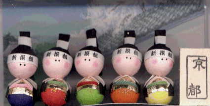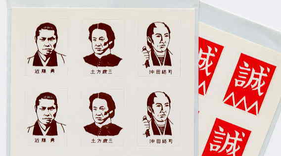 イサミンと歳さんは写真があるので本人の顔だが、総司は島田順司が代役。ケータイに貼ってもいいけど、インクが落ちるから注意だ。 |
