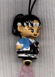 この子ピカイチで可愛い!藤堂平助のストラップを作ったらこんなかんじかな?紐の部分も御洒落なビーズで高級感を漂わせている。うーん、御落胤って感じ〜! |